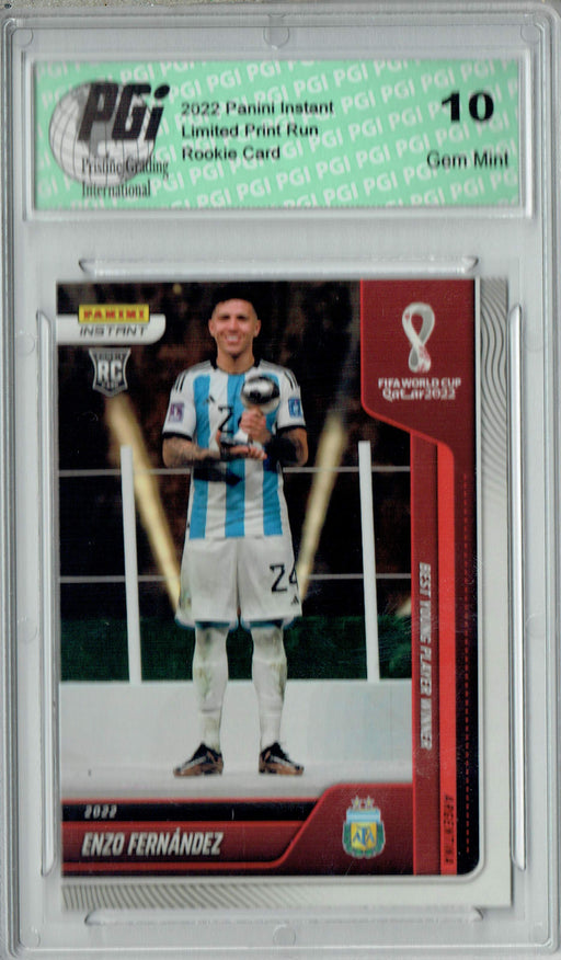 Gorgeous 2022 Panini Instant rookie card of Enzo Fernandez. This card has been graded by Pristine Grading International (PGI), a leading grader of ...