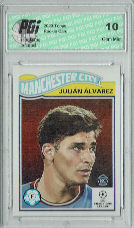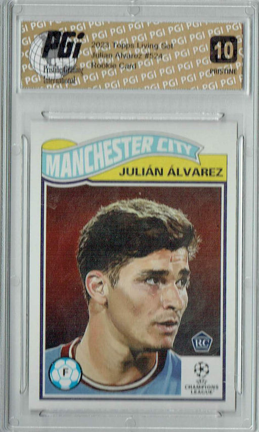 Gorgeous 2023 Topps Living Set rookie card of Julian Alvarez. This card has been graded by Pristine Grading International (PGI), a leading grader o...
