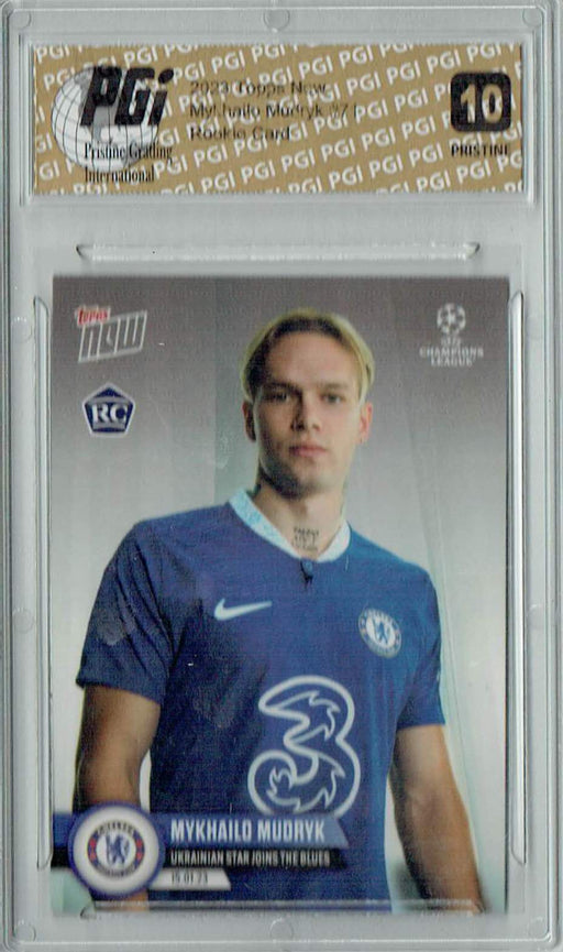 Gorgeous 2023 Topps Now rookie card of Mykhailo Mudryk. This card has been graded by Pristine Grading International (PGI), a leading grader of trad...