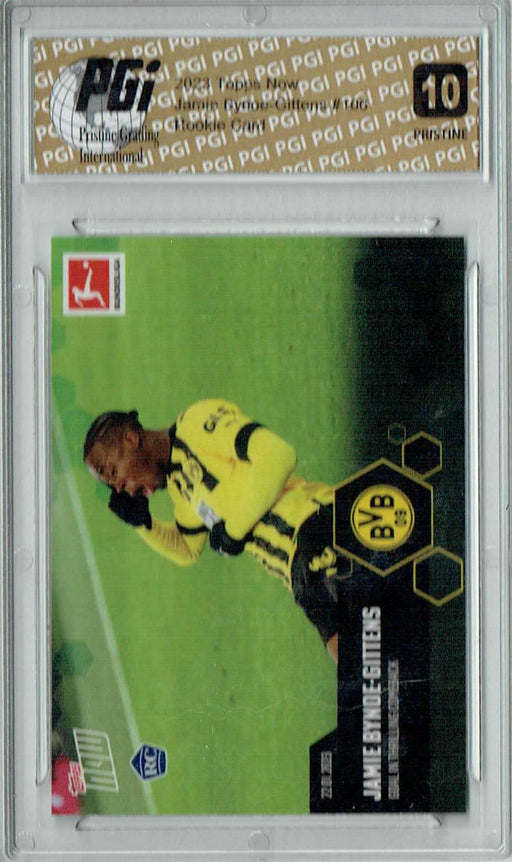 Gorgeous 2023 Topps Now rookie card of Jamie Bynoe-Gittens. This card has been graded by Pristine Grading International (PGI), a leading grader of ...