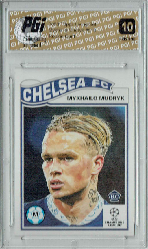 Gorgeous 2023 Topps Living Set rookie card of Mykhailo Mudryk. This card has been graded by Pristine Grading International (PGI), a leading grader ...