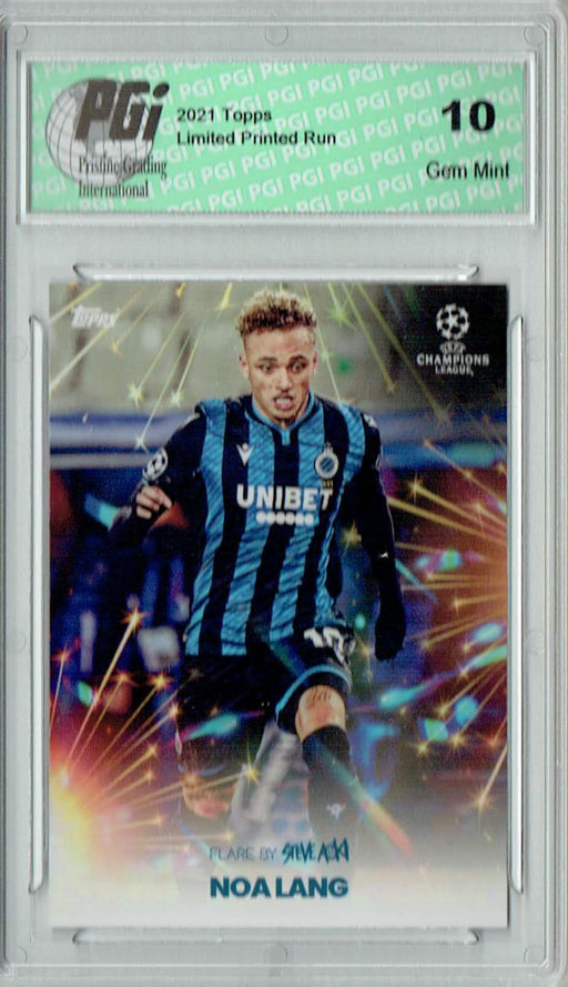 Fantastic, hard-to-find 2021 Topps card of Noa Lang. This card has been graded by Pristine Grading International (PGI), a leading grader of trading...