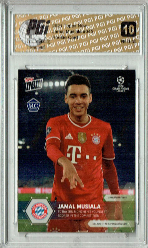 Gorgeous 2021 Topps Now rookie card of Jamal Musiala. This card has been graded by Pristine Grading International (PGI), a leading grader of tradin...