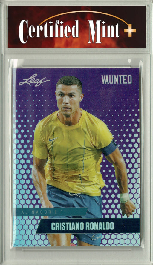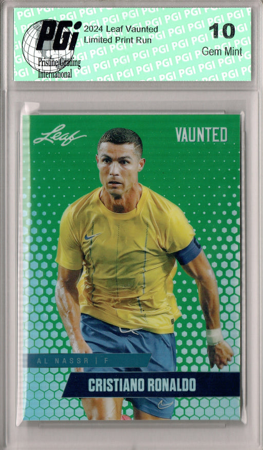 Gorgeous 2024 Leaf Vaunted Metal trading card of Cristiano Ronaldo, the global soccer icon from Portugal. This card has been graded by Pristine Gra...