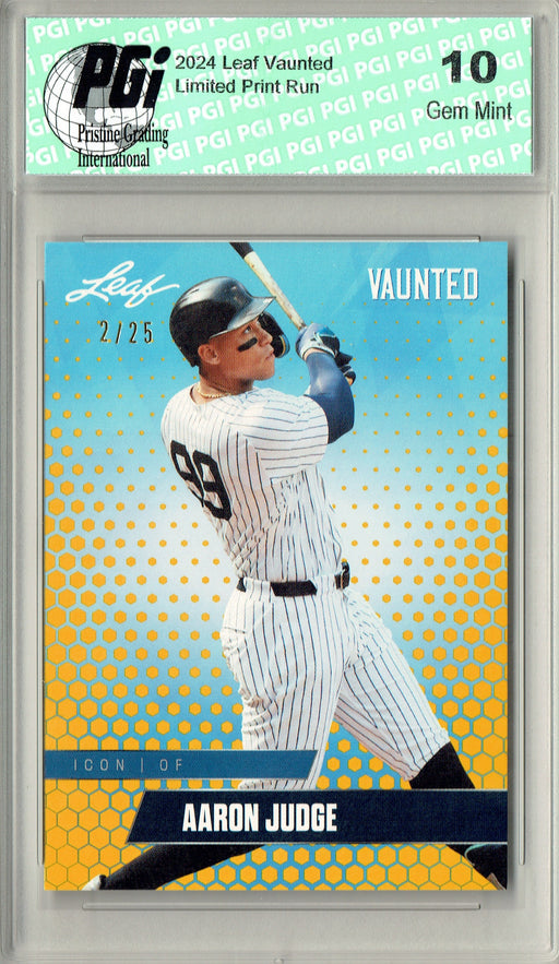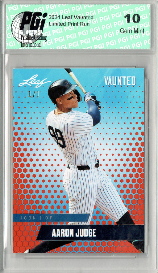 Gorgeous 2024 Leaf Vaunted Trading card of Aaron Judge of the New York. This card has been graded by Pristine Grading International (PGI), a leadin...