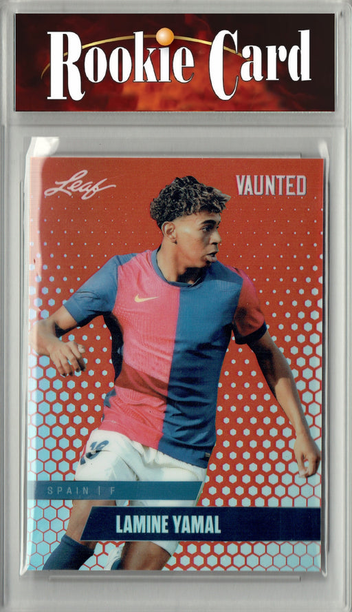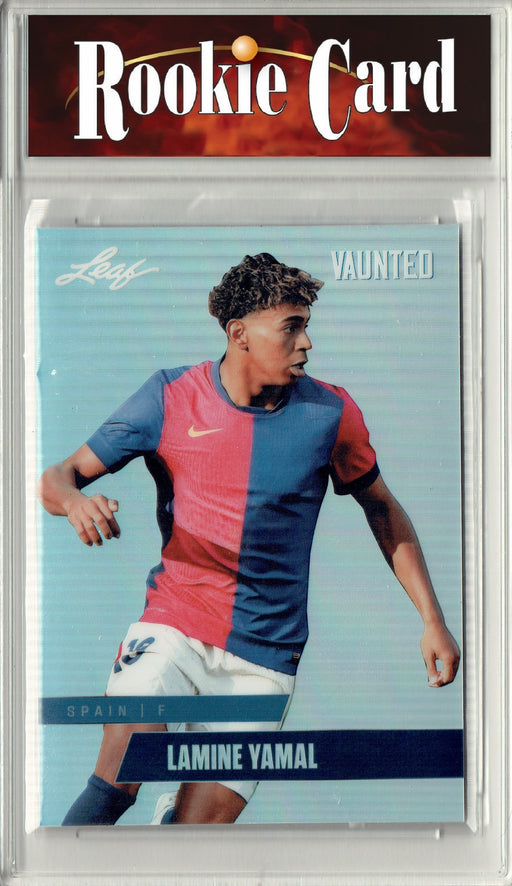 Gorgeous, exclusive 2024 Leaf Vaunted Metal rookie card of Lamine Yamal from La Liga club Barcelona. We seek the most well-made cards in the best c...