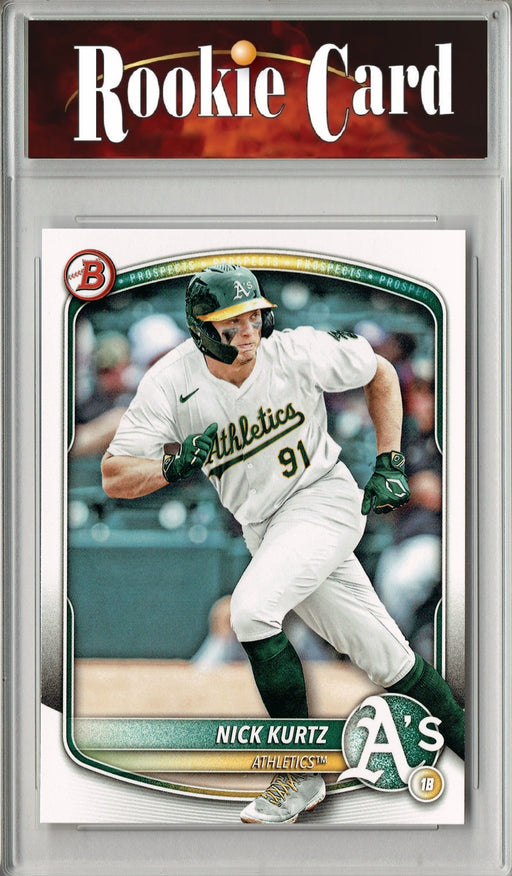 Gorgeous, exclusive 2025 Bowman rookie card of Nick Kurtz of the Oakland Athletics. We seek the most well-made cards in the best condition, take th...
