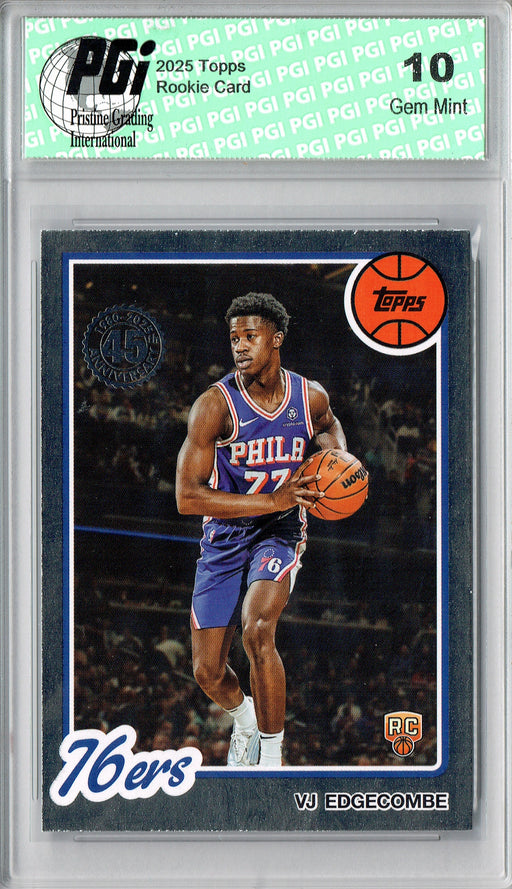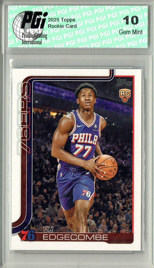 Gorgeous 2025 Topps rookie card of V.J. Edgecombe of the Philadelphia 76ers. This card has been graded by Pristine Grading International (PGI), a l...