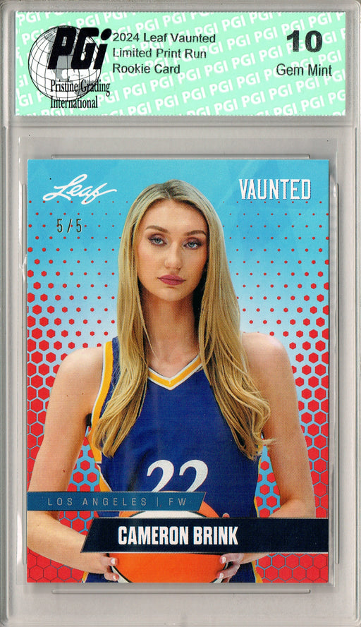Gorgeous 2024 Leaf Vaunted rookie card of Cameron Brink of the Los Angeles Sparks. This card has been graded by Pristine Grading International (PGI...