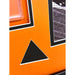 The presentation is completed with a bold orange mat featuring black geometric accents inspired by Fred Flintstone’s iconic wardrobe. The piece is preserved under plexiglass in a sleek black frame, ensuring long-term protection and display quality.