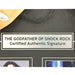 Celebrate the electrifying legacy of Alice Cooper, the Godfather of Shock Rock, with this rare and striking framed display. Famed for his theatrical performances, dark stage persona, and groundbreaking influence on rock music, Cooper’s bold artistry has left an indelible mark on generations of fans. This collectible collage pays tribute to his larger-than-life presence and enduring impact on the world of rock.